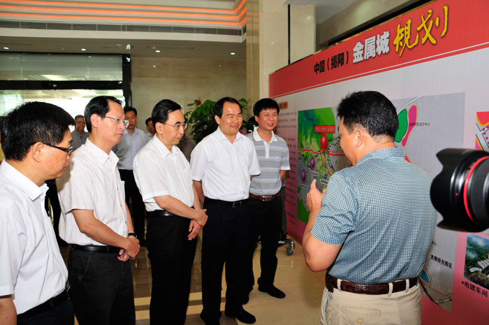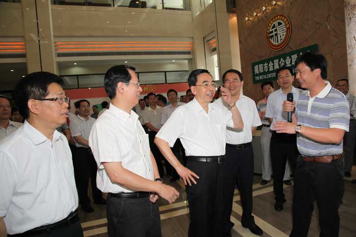 陳東市長(zhǎng)簡(jiǎn)要的介紹了揭陽(yáng)市近年來(lái)金屬產(chǎn)業(yè)發(fā)展和金屬產(chǎn)業(yè)轉(zhuǎn)型升級(jí)的概況,吳克東會(huì)長(zhǎng)詳細(xì)介紹揭陽(yáng)金屬城建設(shè)、規(guī)劃、開(kāi)發(fā)的情況,隨后朱小丹省長(zhǎng)觀看了《產(chǎn)業(yè)復(fù)興,輝煌崛起——揭陽(yáng)金屬產(chǎn)業(yè)20年巡禮》宣傳片,他對(duì)揭陽(yáng)金屬產(chǎn)業(yè)自主創(chuàng)新模式給予充分肯定,希望揭陽(yáng)繼續(xù)發(fā)揮金屬產(chǎn)業(yè)集群的優(yōu)勢(shì),不斷提升自主創(chuàng)新,打響自主品牌,培養(yǎng)龍頭企業(yè),為加快產(chǎn)業(yè)轉(zhuǎn)型升級(jí),建設(shè)幸福廣東作出新貢獻(xiàn)。