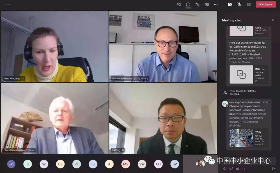 △ 中國(guó)中小企業(yè)中心(德國(guó))與開(kāi)姆尼茨工商會(huì)企業(yè)家們召開(kāi)線上對(duì)話會(huì)