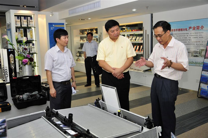 在認(rèn)真聽取揭陽金屬產(chǎn)業(yè)發(fā)展態(tài)勢及揭陽金屬產(chǎn)品的介紹后,馬捷理事長對揭陽市五金行業(yè)的快速發(fā)展給予了高度的評價(jià)。馬捷理事長表示,表面處理技術(shù)的創(chuàng)新是金屬產(chǎn)業(yè)升級的關(guān)鍵。揭陽必須規(guī)劃建設(shè)好表面處理園區(qū),正確理解開展污染整治和新形勢下金屬產(chǎn)業(yè)可持續(xù)發(fā)展的重要性,全面提升揭陽電鍍酸洗行業(yè)的環(huán)保管理水平,促進(jìn)揭陽金屬產(chǎn)業(yè)做大、做強(qiáng)、做優(yōu)。