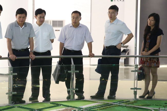 陳雄貴一行參觀項(xiàng)目沙盤模型,了解項(xiàng)目規(guī)劃布局及建設(shè)情況