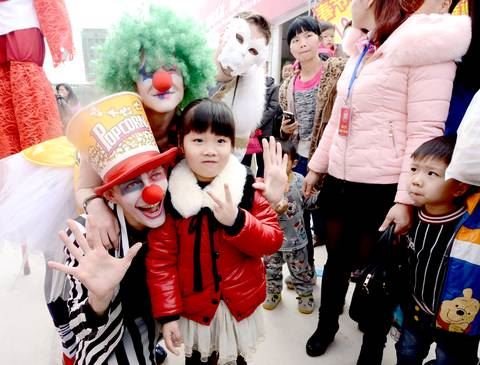 歐洲歌舞團的小丑們在場內巡游、陪玩,小游客也玩得開心!
