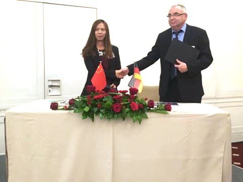 王妍與德企簽訂合作協(xié)議。